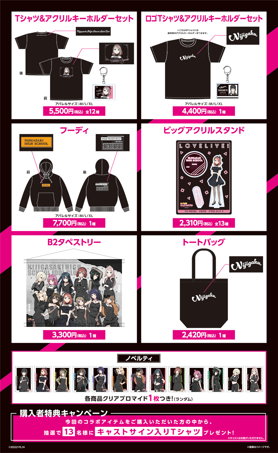 また、ご購入者の中から抽選で13名様にニジガクキャストの直筆サイン入りTシャツをプレゼントいたします。