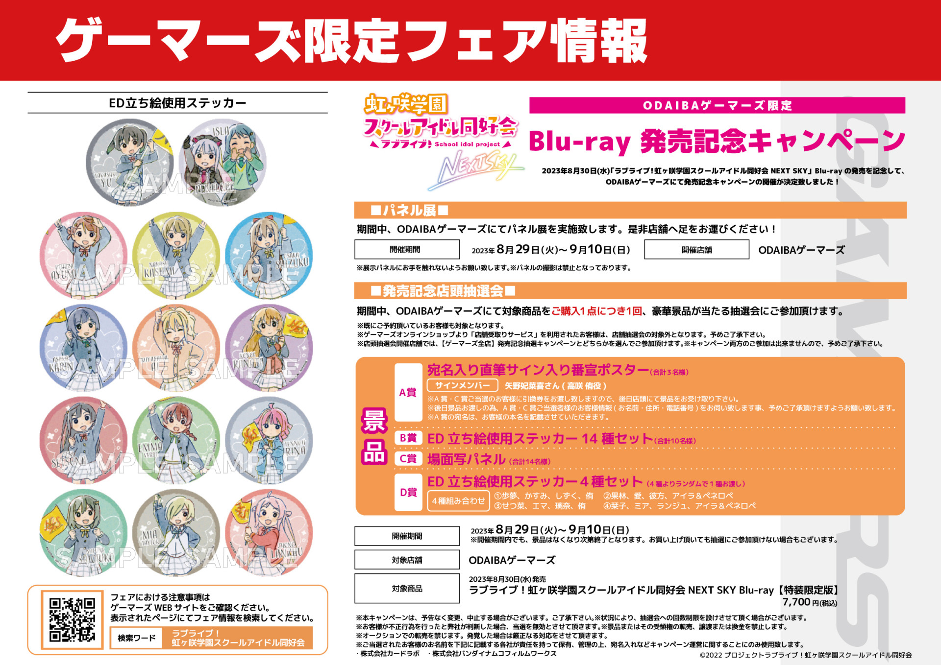 期間中、ODAIBAゲーマーズにて、「ラブライブ!虹ヶ咲学園スクールアイドル同好会 NEXT SKY」Blu-rayを1点ご購入ごとに1回、豪華賞品の当たる抽選会にご参加頂けます!
